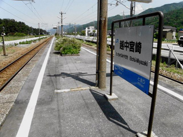 狭義のヒスイ海岸は市振駅の次の停車駅、越中宮崎駅の前に広がる約4キロの海岸を指します。この土地は富山県下新川郡朝日町に属しているので、糸魚川市で入手できる観光マップには記載されていません。列車でなら越中宮崎駅で下車。無人の出札口を出て、目の前の海岸に向かって2、3分歩くだけで波打ち際に立てます。車で行く場合も越中宮崎駅を目標にします。