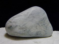 「石は石を呼ぶ」ので、ヒスイハンター初心者はアユ釣りのおとりを使うように翡翠捜しには小さな翡翠原石や翡翠勾玉などの製品を持っていくと、ビギナーズ・ラックを期待できます。ぼくのヒスイ海岸初体験はまったくの空振りで、現地のヒスイハンターからいただいた小指大の翡翠原石と親指大のネフライトが翡翠の女神ヌナカワヒメからのプレゼントのようでした。2度目のヒスイ海岸では「石に絵や書を描く趣味」のために黒くて平らに磨かれた変成岩を熱心に集めました。やっぱり翡翠はだめだった、もう帰ろうと海に背を向けて4、5歩、歩いた足先に、誰がどのように見ても翡翠だとわかる梅干し大の原石が鎮座していました。