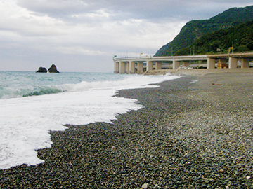 市振海岸は知る人ぞ知るヒスイハンティングの名所。海岸を漂石が埋めている日には大きな獲物を期待できる
