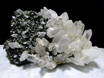 トレモライトは基本色が白色で和名は透閃石。鉄分がまざると深緑色に発色してアクチノライトになります。和名は透緑閃石で、陽起石という漢方薬的和名もあります。古代中国では陽起石は仙薬の一種とされ、これを煎じたり、微粉末を飲用すれば精力絶倫になるとの考えに由来します。漢方やインド医学では薬物に植物薬・動物薬・鉱物薬の3種を数え、鉱物薬を最上位にランク付けしています。
