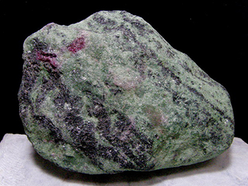 タンザニア産のルビー・ゾイサイト原石。若やいだ緑色のゾイサイトに小豆色のルビーが埋め込まれたように随伴している。