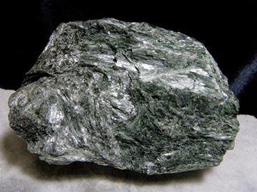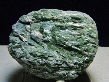 アクチノライト(透緑閃石)とネフライトは同じ鉱物。極微の結晶が集合して岩塊状になったものがネフライト。長崎県産。202g,約80x58x43mm