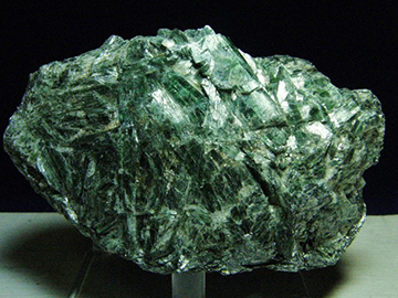 アクチノライトは針状、柱状結晶の集合体として産出する場合が多く、グリーンルチルとよばれる水晶のなかには、針状のアクチノライトが内包されたものがあります。