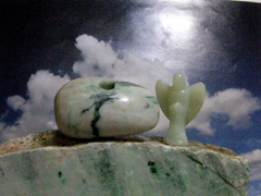 ◆翡翠石笛があると、とても容易に、古代のシャーマンたちと気持ちがつながります。遠く離れていても、見えない糸で結ばれている友人らのように、会ったことも見たこともない古代のシャーマンたちと結ばれる気持ちになります。よくよくみれば、彼らは自分の心のなかに居るのがわかります。彼らが元気付くとき、まったく同時に心も元気になります。翡翠石笛は心を活性化させるビタミン剤のようで、効き目の素早さと、身体や心に効いてくる感触やら過程がとても不思議です。
