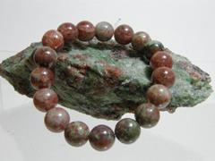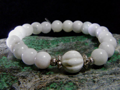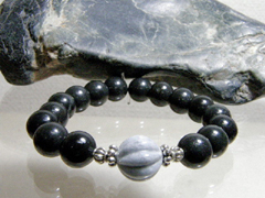 神居古潭10ミリ玉ビーズの中央に日本翡翠果実玉を入れたブレスレット。強力な守護パワーが自慢